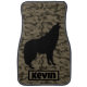 Modern Brown Camo Black Wolf Silhouette Monogram | Car Floor Mat