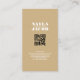 Business card design with a brown earth tone checkered pattern in a clean, minimal layout, featuring a QR code for quick access to a website or portfolio. Suitable for handmade clothing brands, artisan shops, or creative professionals.