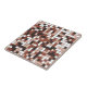 This ceramic tile features a geometric square pattern in white, blush and chocolate shades with a black grid. The squares are colored in a random pattern which you can edit the colors in the Design tool.