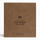 Modern Brown Suede Brushed Gold Monogram 3 Ring Binder