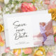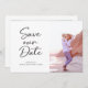 Stylish and fun wedding Save the Date photo card with a cute brush script font. Add photos to both the front and the back of this card.