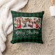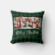 Modern Brush Script 3 Photo Christmas Green Plaid Throw Pillow