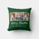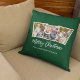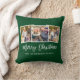 Modern Brush Script 3 Photo Christmas Green Throw Pillow