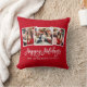 Modern Brush Script 3 Photo Happy Holidays Red Pillow