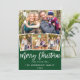 Modern Brush Script 4 Photo Christmas Green Holiday Card