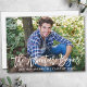 Modern Brush Script The Adventure Begins Graduate Photo Graduation Announcement Card