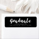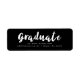 Dress up your graduation announcement and party envelopes with our Modern Brush Script Black & White graduation return address labels. The modern graduation return address labels features "graduate" in a white brush script font with your name & address displayed below against a black background.