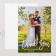 Modern Brush Script Bride and Groom Wedding Photo Thank You Card - White Script
