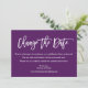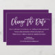 Modern Brush Script Change The Date Wedding Postponed Card Purple