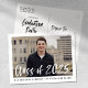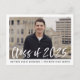 Stylish, modern graduation party invitation postcards featuring the graduate's photo framed in white with "Class of 2025" in a white, watercolor brush script overlay. Personalize the front by adding the graduate's name and school name in black text. The invite reverses to display your return address and graduation party details in black text.