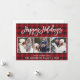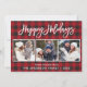 Modern Brush Script Happy Holidays 3 Photo Plaid Holiday Card