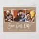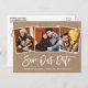 Modern Brush Script Kraft Save Our Date 3 Photo Postcard