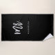 This stylish beach towel says "Mr." in trendy white script typography on a black background, and also has a spot for your last name. You can change the background color to anything you wish.