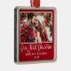 Modern Brush Script Our First Christmas Couple Photo Red Ornament