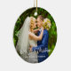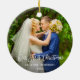 Modern Brush Script Our First Christmas - Mr. & Mrs. Wedding Photo Ornament - Front and Back Photos - Round