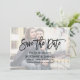 Modern Brush Script Save The Date Engagement Announcement Card with Photo Overlay - Photo Front and Photo Back