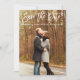 Modern Brush Script Save The Date Engagement Announcement Photo Card - White Script, Kraft Back