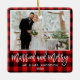 Modern Brush Script, Rustic Red Plaid Married and Merry Wedding Photo Ornament