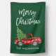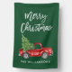 Modern Brush Script Merry Christmas Garden Flag featuring Watercolor Vintage Red Truck with Christmas Tree.
