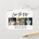 Modern Brush Script Save The Date 3 Photo Announcement Postcard