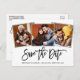 Modern Brush Script Save The Date 3 Photo Collage Postcard