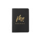 Modern brushed gold lettering script "Mr.", passport holder. Features single template text line in coordinating gold color for last name. Background color, shown in black, can be customized.