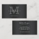 Modern Brushed Metal Black Gray Script Monogram Business Card