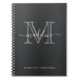 Modern Brushed Metal Black Gray Script Monogram Notebook