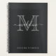 Modern Brushed Metal Black Gray Script Monogram Planner
