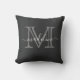 Modern Brushed Metal Black Gray Script Monogram Throw Pillow