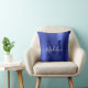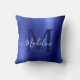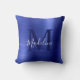 Modern Brushed Metallic Blue Script Monogram Throw Pillow