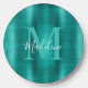 Modern Brushed Metallic Teal Monogram Script Wireless Charger
