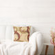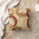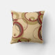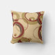 The pillow features a modern version of floating bubbles in warm shades of beige, charcoal and burgundy.