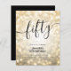 Elegant Glam Gold Glitter Lights 50th Birthday Script invitation template featuring sparkling lights and modern typography script.