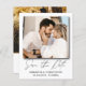 Elegant and chic save our date announcement. This template features space for 2 of your favorite couples photos, for front and back of card, in white with cool hand written calligraphy in gold. Easy to edit with your own unique details.
