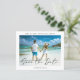 This is a modern and budget friendly wedding save the date card using a beautiful calligraphy style font along with a minimalist photo design, printed on a paper sheet.