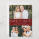 Elegant, multi-photo save the date featuring "Save the Date" displayed in white lettering with a burgundy background. Personalize the modern QR save the date card with 3 of your favorite photos, your names, wedding date, and wedding location. The burgundy save the date reverses to display your custom QR code with wedding website and custom text.