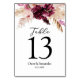 Modern Burgundy Blush Pink Floral Table Number