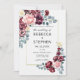 Modern Burgundy Blush Roses Floral Frame Wedding Invitation