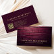 This modern business card features a background image of a dark burgundy brick wall. Personalize it with your name in chunky gold-colored serif font and your business information in sans serif font. The back of the card features gold-colored text on a solid dark burgundy background, along with a QR code that directs customers to your business website.