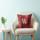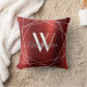Modern Burgundy Brushed Metal Monogram Name Script Throw Pillow