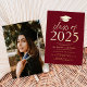 Invite guests to celebrate the grad with our modern class of 2025 graduation party invites. The invites feature a graduation cap at the top with "Class of 2025" displayed in gold foil lettering with a burgundy background. Personalize the invites by adding the graduate's name, school, and graduation party details. The gold foil graduation party invites reverse to display the graduate's photo.