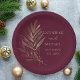 Modern Burgundy Gold Leaf Wedding Monogram Paper Plates