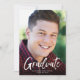 Modern Brush Stroke Script Photo Graduation Announcement featuring your photo and our trendy script overlay in white The back is a modern burgundy maroon, but all fonts and colors are easily modified. Perfect for celebrating your graduate! Rustic and trendy; perfect for a masculine boy graduation announcement. Please contact us at cedarandstring@gmail.com if you need assistance with the design or matching products.