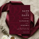 Easily personalize your wedding save the date cards with this editable template. Features minimal elegant typography design in burgundy color.