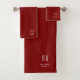 Modern Burgundy Monogram Bath Towel Set
