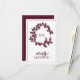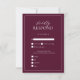 We're loving this trendy, modern burgundy RSVP card! Simple, elegant, and oh-so-pretty, it features a hand drawn leafy wreath encircling a modern wedding monogram. It is personalized in elegant typography, and accented with hand-lettered calligraphy. Finally, it is trimmed in a delicate frame and the back of the card allows guests to indicate their intention to attend and entree selection.To remove meal choices, we have create a how-to video for you here: https://youtu.be/ZGpeldQgxoE Veiw suite here: