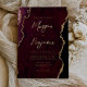 Modern Burgundy Red Agate Script Wedding Foil Invitation