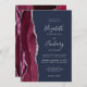 Modern Burgundy Silver Agate Navy Blue Wedding Invitation