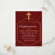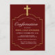 Modern Burgundy Simple Gold Cross Confirmation Invitation Postcard